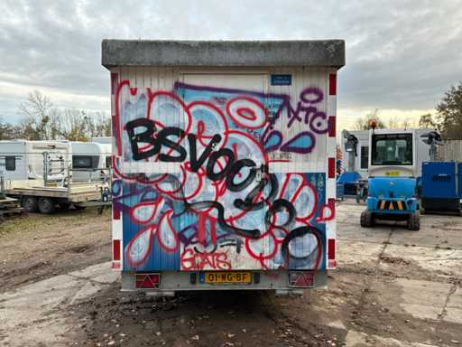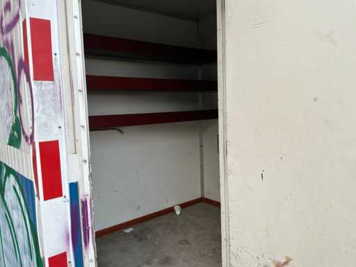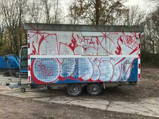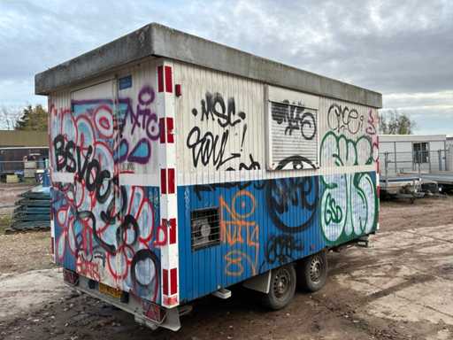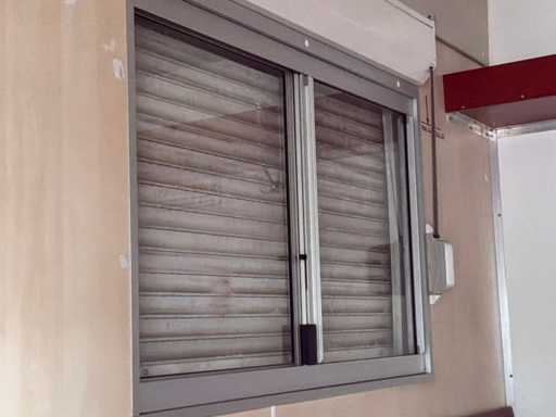 Equipped with: gas heater, lighting, shutters, storage space at the front of the canteen. NOTE: right arm is missing.