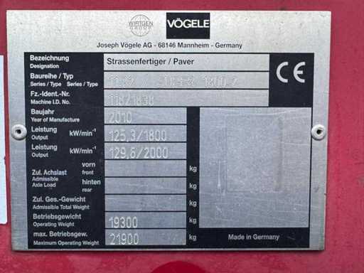 6-cylinder Perkins diesel engine; 174 hp; 11796 hrs; screed AB500 Max working width 5000 mm.; own weight 19,300 kg.