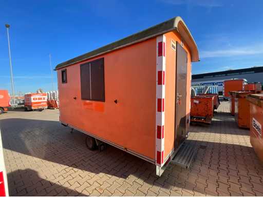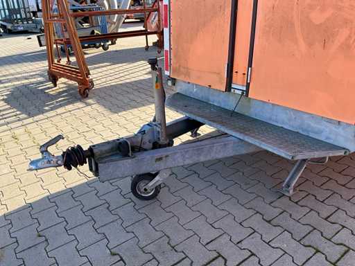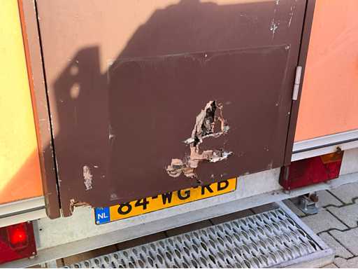 galvanized steel frame; inhibited; overrun brake; fast traffic; ball coupling; transport lighting; 3x exterior door; separate storage space; separate toilet room; 2x window with shutter; table; chairs; stove; rear door damaged; jockey wheel; (the buyer must provide a valid registration number when transporting by road; a 7 or 9 pin connection plug or adapter with cable (extension cord can be purchased on site for a fee); possibly extra light bar; Dutch registration papers; without a certificate of conformity);