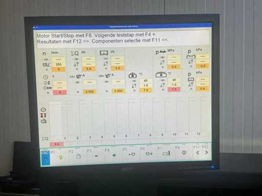 With associated pipes; Degree of protection IP 43; Input frequency 50 Hz / 60 Hz; Output power 8 KW; Number of phases 3 P/PE; Standstill torque (motor) 23 Nm; Maximum torque (motor) 61 Nm; Speed range 0 to 4000 rpm; Maximum permissible ambient temperature 40 °C; Shaft height (clamping bed height to the shaft center of the injection pump) 110 mm; 2600 ISO nm/°; Rail designed for pressure values up to 250 MPa; Test pressure 18 to 220 MPa; Pre-feed pump pressure 10 to 500 kPa