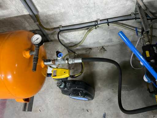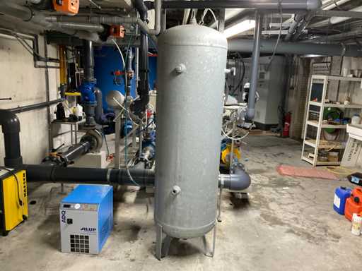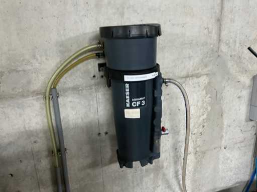 Wall-mounted, Kaeser CF3 water filter, Kaeser TAH6 air dryer, Alup ADQ, SCC 500 liter drum are included. Lot is located in a basement, goods elevator is available, no hand truck available