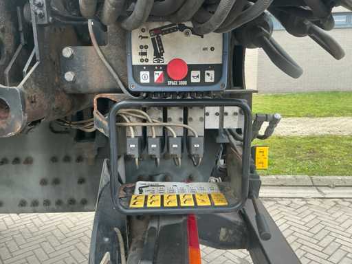 Equipped with HIAB 122 B-2 Duo loading crane. Rear axle is steering axle