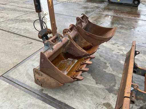 Second excavator bucket 400x450x300 mm, third excavator bucket 400x200x300 mm, fourth excavator bucket 600x350x350 mm, dozer blade 130 cm, auxiliary hydraulic connection, work lights, rotating beacon, hydraulically adjustable tracks.