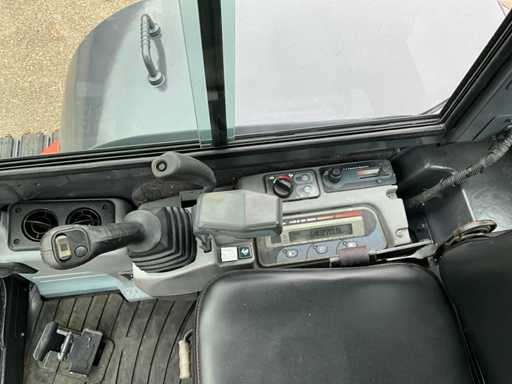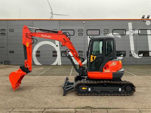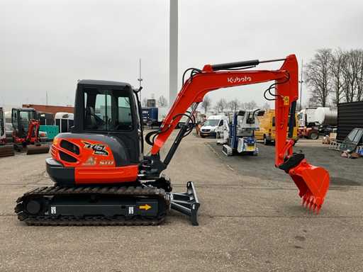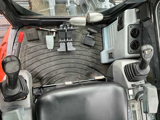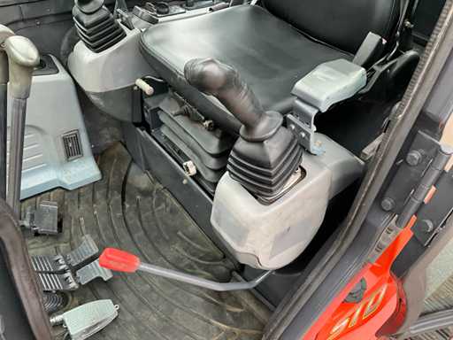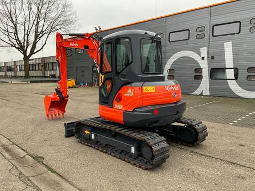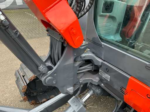 Backhoe bucket with teeth 700mm, mechanical quick coupler, extra hydraulic function, swing boom, sliding blade, steel tracks with rubber pads, 2nd travel speed