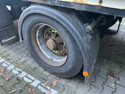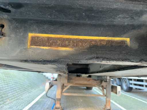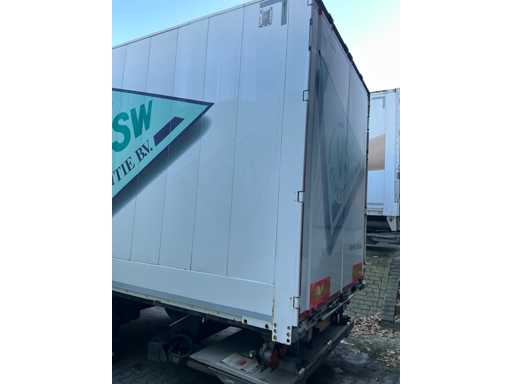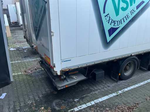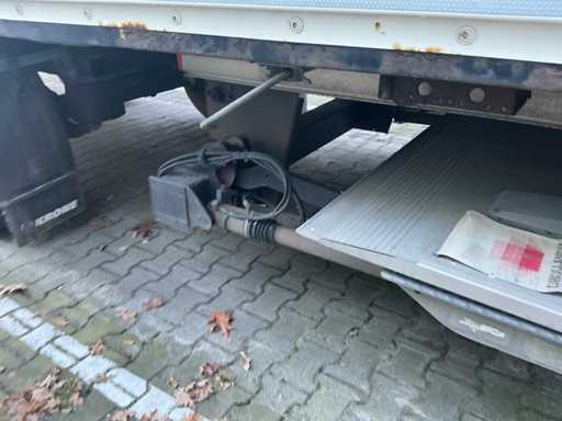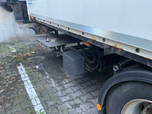 Max mass 32000kg, distance center coupling to rear 1200cm, length 1386cm, width 255cm, wheelbase 891cm., Equipped with Heiwo superstructure, Air suspension PBW axles of which axle2 forced steered, Dhollandia DHSMR20 underfolding tailgate, tire size 385/55R22.5