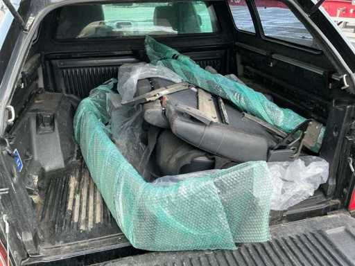 Equipped with: tow bar, 7-pin plug, 3-person sofa supplied separately, radio with Bluetooth, navigation system, CD, electrically adjustable seats, heated seats, multifunction steering wheel, alloy wheels, alloy spare wheel, roof rail, electric folding mirrors, new particulate filter, 4wd, airbag, 2 spare tires, load cover cargo box.