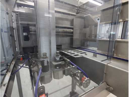 Equipped with buffer infeed station, 2-lane plastic link conveyor belt length 1600mm and "Siemens" Touch panel control