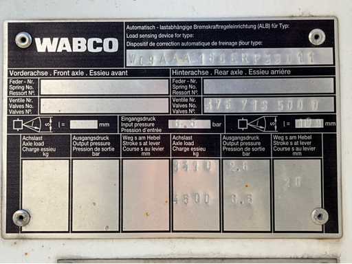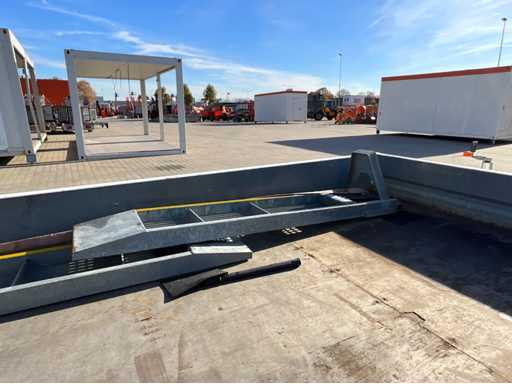 length 6000 mm; width 2440 mm; height 1350 mm; galvanized steel frame; dismantled ramps; partly folding drawbar; jockey wheel; (the buyer must provide a valid registration number when transporting by road; a 7 or 9 pin connection plug or adapter with cable (extension cord can be purchased on site for a fee); possibly extra light bar; German registration papers; certificate of conformity; (MZ-KI613)