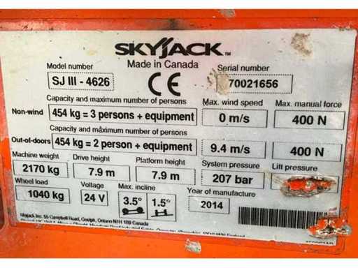 Platform floor height 7900 mm; extendable platform size approx. 3150x1070 mm; internal battery charger 230 Volt; cage control; 230 Volt power connection platform; transport height approx. 1950 mm; working condition;
