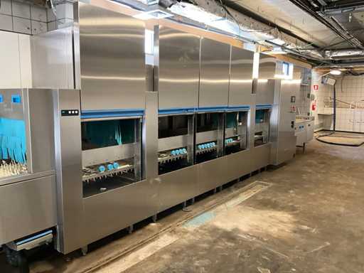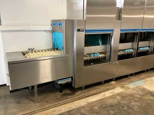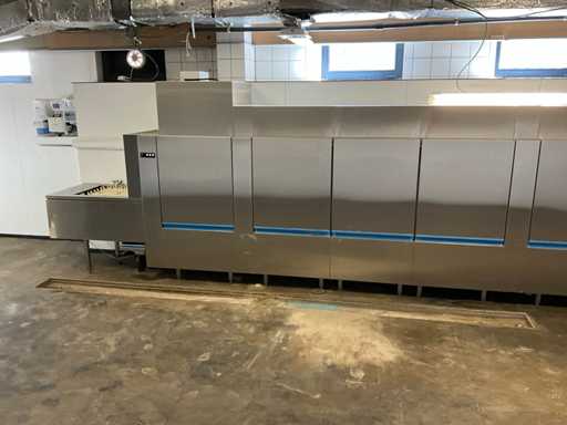 Machine must be disassembled and moved by the buyer - dishwasher is in the basement - NO loading facilities available - pallet truck operation not checked - soap dosing system included - Dishwasher racks NOT included