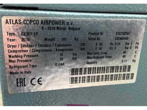 2016 Atlas Copco GX3FF EP Screw Compressor