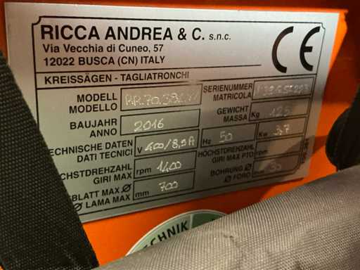 2016 Ricca Andrea / Thor Katana 70.102 Tilting Saw 280mm 400V