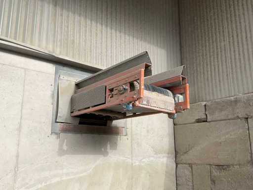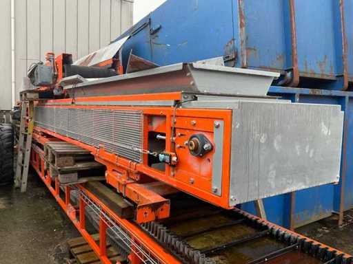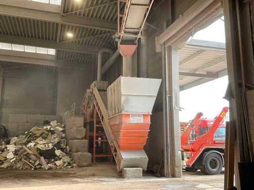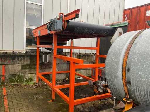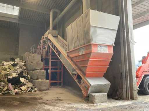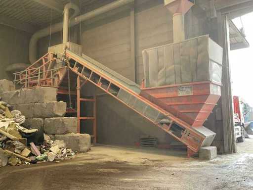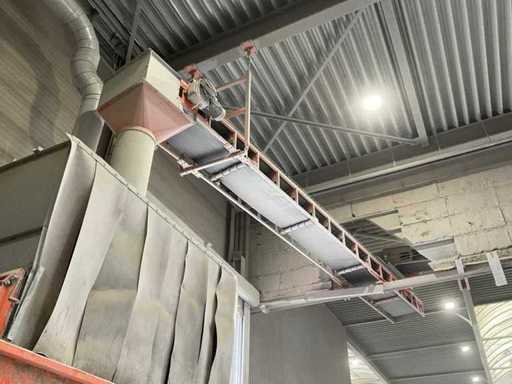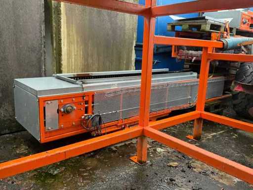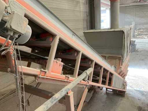 sieve decks 4 to 6 mm; power approx. 80 - 100 tons/hour; equipped with 30 kW fan; working width 1000 mm; incl. (1x) "INTEGRA" screening machine; type VSC 120/105x300; working width 1200 mm; equipped with (2x) vibration motors; mounted on metal base; Total dimensions. approx. 4286x2005x4659 mm; (1x) "INTEGRA" broadband conveyor; type FBR 160-25-0330; working width 1660 mm; Total dimensions. approx. 4400x2275x910 mm; (1x) "INTEGRA" conveyor belt; type FBR 065-32-0260; working width 840 mm; Total dimensions. approx. 2960x1233x760 mm; (1x) "INTEGRA" elevator conveyor; type FBR 065-47-0990; working width 840 mm; Total dimensions. approx. 10,400x1120x7992 mm; (1x) "INTEGRA" conveyor belt; type FBR 065-40-1280; working width 840 mm; Total dimensions. approx. 13,200x1125x635 mm; (1x) "INTEGRA" conveyor belt; type FBR 065-40-0860; working width 840 mm; Total dimensions. approx. 9560x1395x4525 mm; (1x) "INTEGRA" elevator conveyor; type DFB 100-60-0870; working width 1160 mm; cap. approx. 10 m3/hour; Total dimensions. approx. 9080x1660x5700 mm; (1x) "INTEGRA" transversely mounted conveyor belt; type FBR 065-32-0410; working width 840 mm; cap. approx. 10 m3/hour; Total dimensions. approx. 4600x1120x655 mm; (1x) "INTEGRA" transversely mounted conveyor belt; type FBR 065-32-0410; working width 840 mm; cap. approx. 10 m3/hour; Total dimensions. approx. 4600x1120x655 mm