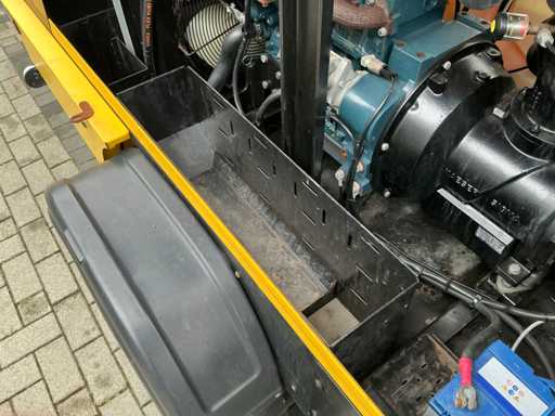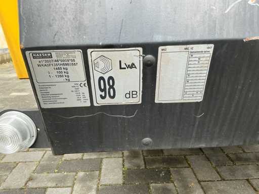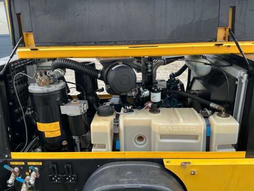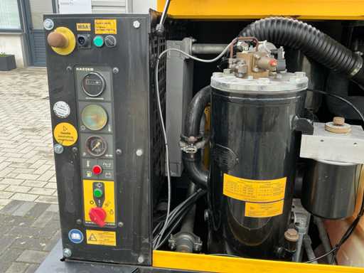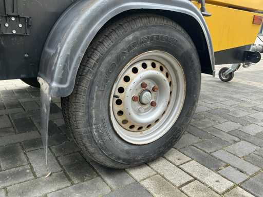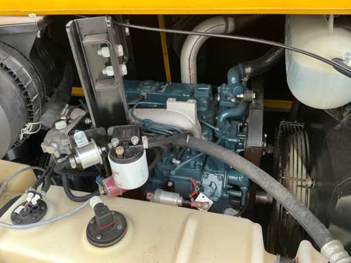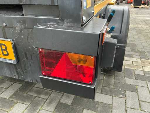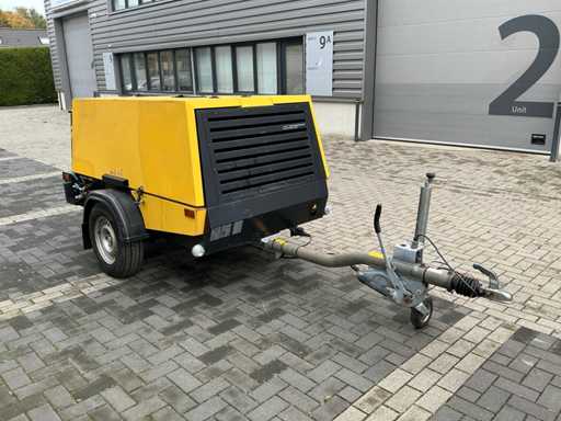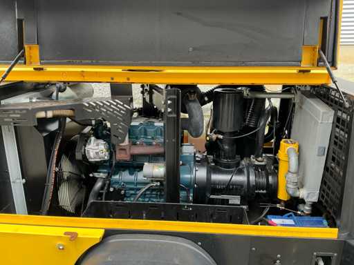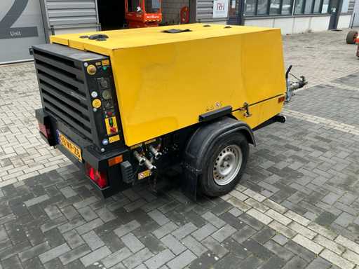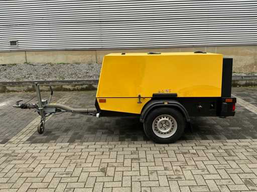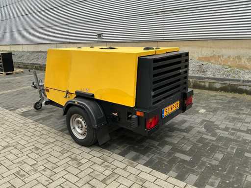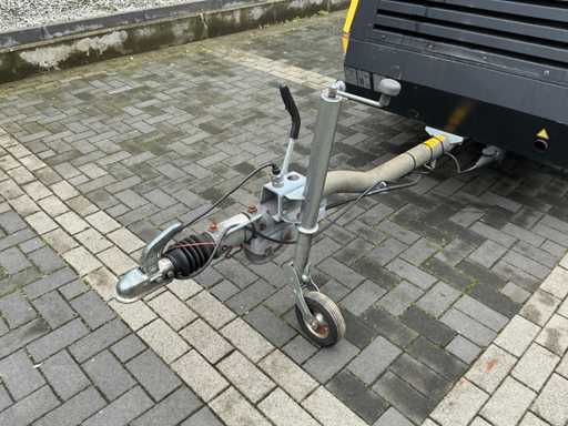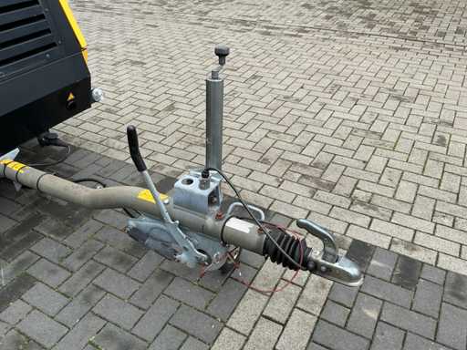 Equipped with: Kubota V2203, 4 cylinder diesel, air after-cooler, quick-coupling to fuel tank, lighting, main switch, jockey wheel, handbrake, overrun brake, flow rate: 5.2 m³/min, max. working pressure: 7 bar, fuel tank capacity: 105 l, operating weight: 1225 kg, air connection: 2 x G 3/4, 1 x G 1.
