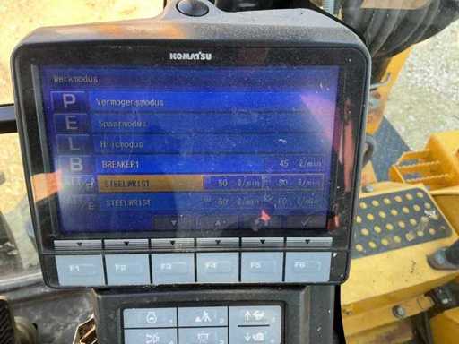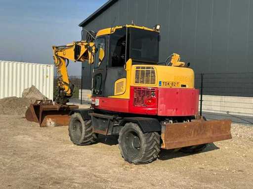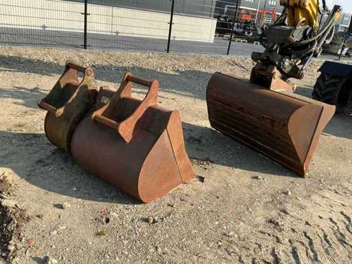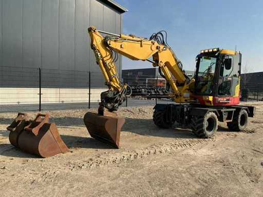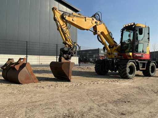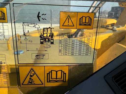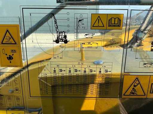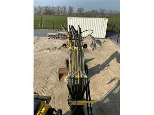 Equipped with air conditioning, extra hydraulic connections, 1x Steelwrist rotator/tilting yoke, 3x excavator bucket (1X1500mm, 1x 800mm and 1x banana 410mm).