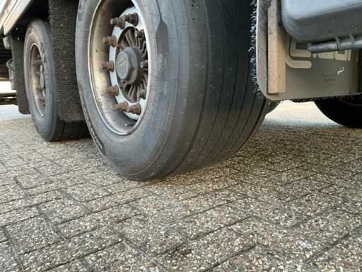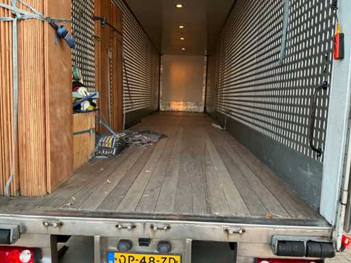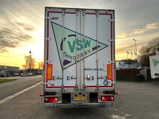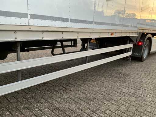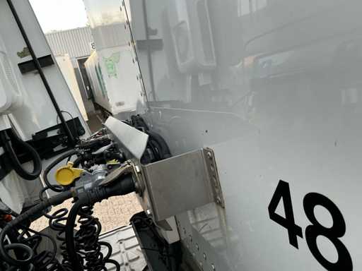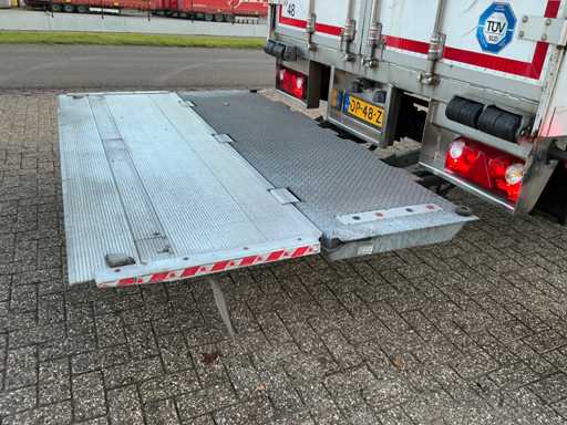 Max mass 30000kg, distance center coupling to rear vehicle 1200cm, total length 1385cm, width 255cm, equipped with air-suspended BPW axles, of which 1x as steering axle, Talfix, Dhollandia tailgate, Tire size 445/45R19.5