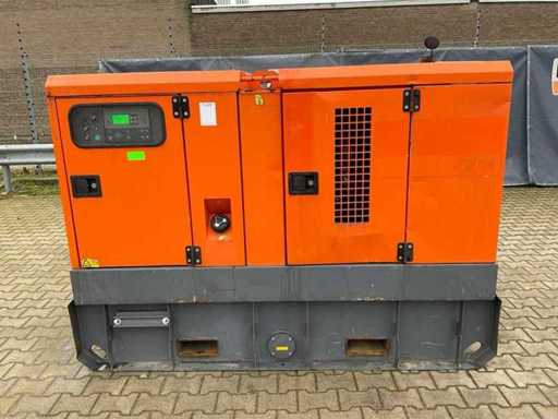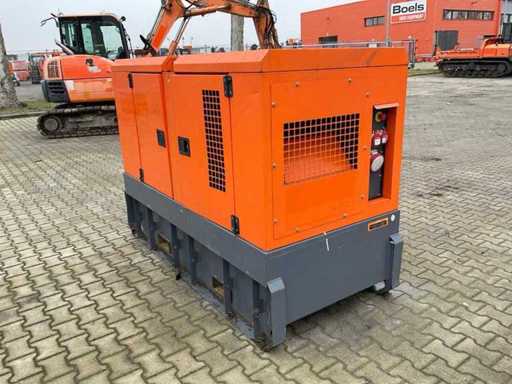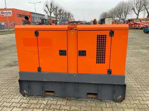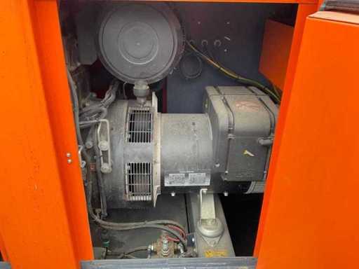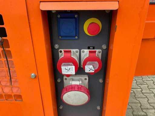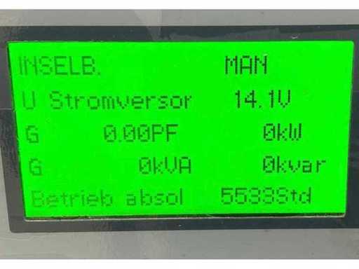 soundproofed; connection: 1x 230 Volt - 16 Amps; 1x 400 Volt - 16 Amps; 1x 400 Volt - 32 Amps; 1x 400 Volt - 63 Amps; fuel tank capacity 298 litres; external fuel tank connection; consumption at maximum load 14 liters / hour; forklift fork slots; working condition;