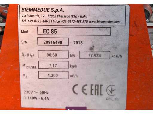 mobile; diesel-fired; underlying fuel tank; 78,000 kcal / hour; 4300 m3/hour; 7.17 liters of diesel / hour; 1140 Watts; not working;