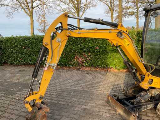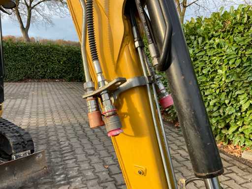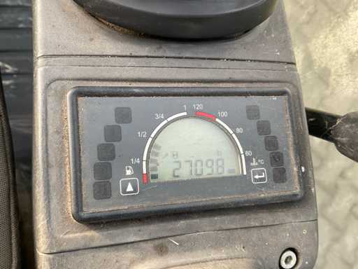 Equipped with: Hydraulic quick coupler, 2-piece swing boom, hydraulically adjustable tracks, planer blade, hydraulic functions on boom, 2 travel speeds, digital display,