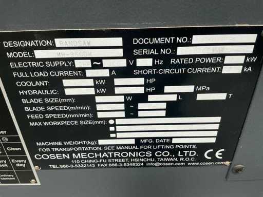 2018 Cosen MH-350DM Horizontal Metal Bandsaw