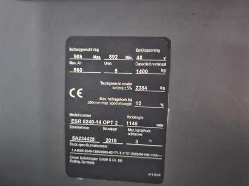 Equipped with: Side shift, Triplo Mast, Battery charger with 380V connection.