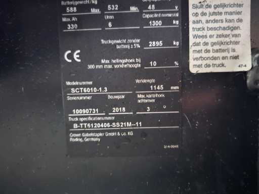 Equipped with: Side shift, Triplo Mast, Battery charger with 380V connection.