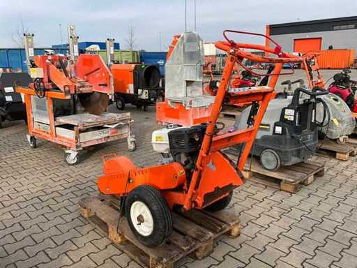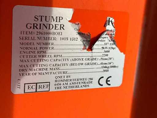 N=3600/minute; gasoline engine; removes tree stumps left in the ground up to 510 mm above soil level and 410 mm below soil level; not working;