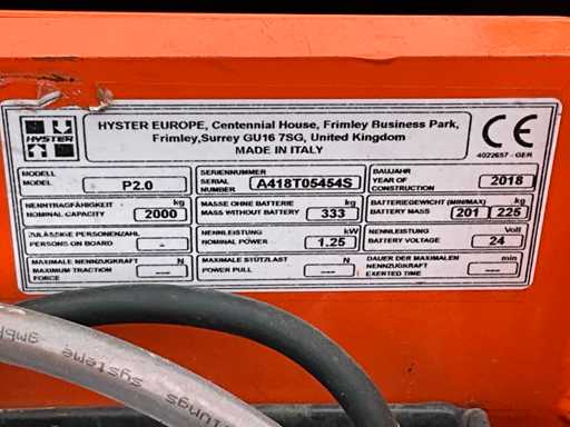 2018 Hyster P2.0 Power Pallet Jack