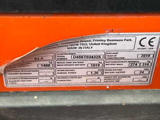 2018 Hyster S1.4 Electric Stacker