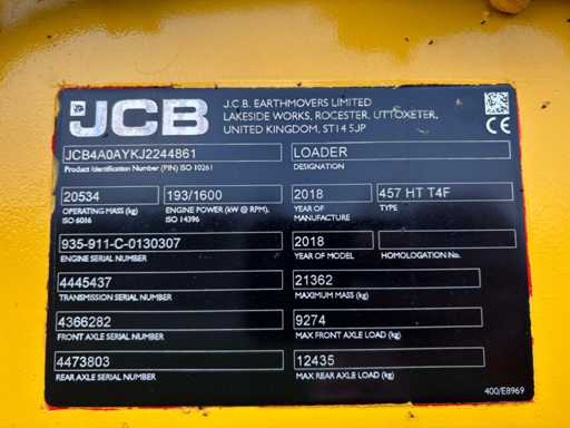 2018 JCB 437 HT T4F, Continental ContiEarth 23.5 R25, 3rd Function, Central Lubrication, BSS (Boom Suspension), Reversing Fan, Towing Eye Rear 50mm