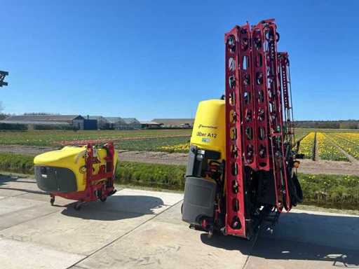 Consisting of Kverneland iXter A12 sprayer and Kverneland iXtra front tank. Sprayer equipped with, among other things: Three-point device, PTO driven pump, hydraulically folding spray booms, 3-ling nozzle holders, suction hose with suction strainer Ø 40mm, 9 sections, Dosatron dosing system, Kverneland Starguide IV. Front tank 1100 liter capacity, equipped with three-point device, work lighting and swivel wheels.