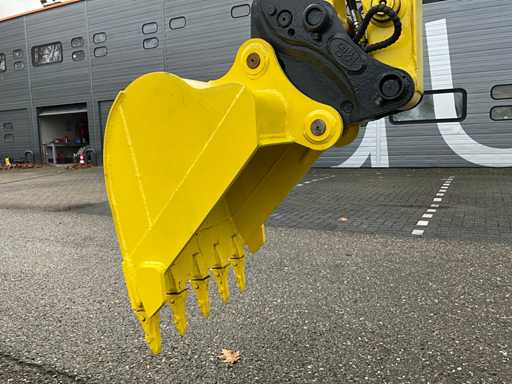 Backhoe with teeth 700mm, hydraulic quick coupler, extra hydraulic function, swing boom, sliding blade, Auto Idle, 2nd speed, steel tracks with rubber pads,