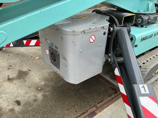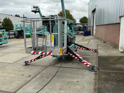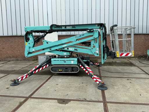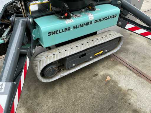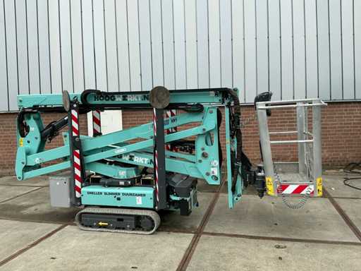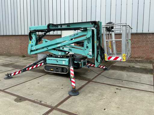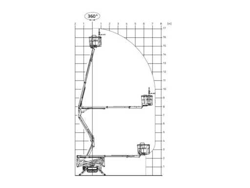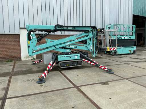 Maximum 360° rotation, indoor and outdoor use, equipped with Lithium-ion battery, 4 outriggers, non-marking tracks, double travel speed, built-in charger, track width 795 mm, air/water/electricity connection in manbox, automatic leveling