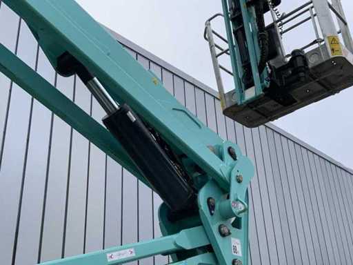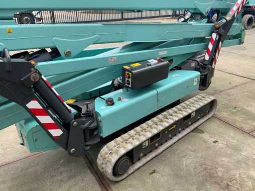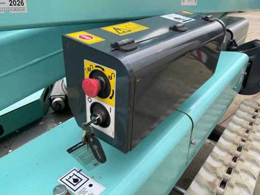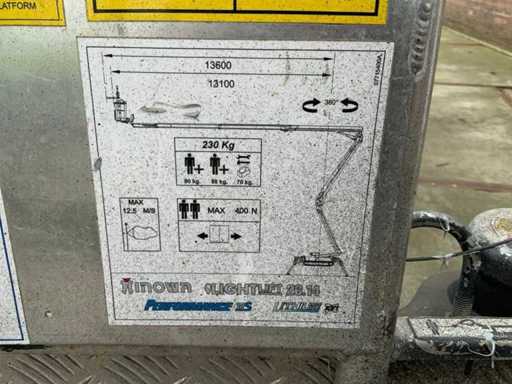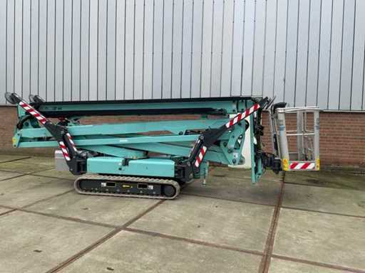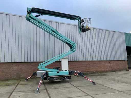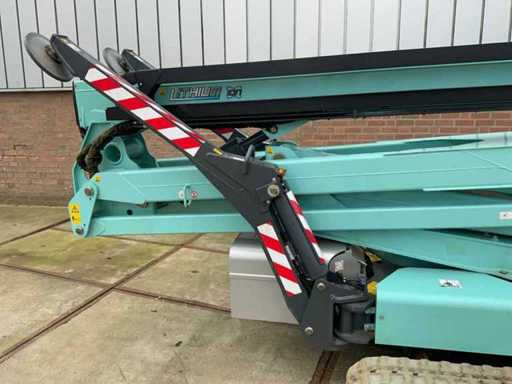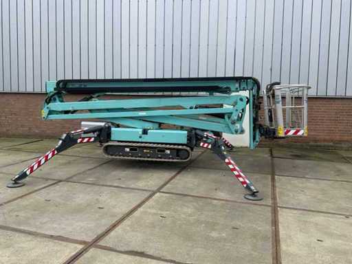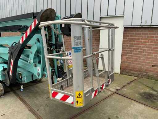 Indoor and outdoor, Max. rotation 360°, double row speed, maximum tilt (B / L) 16.00, max. wind 12.50, equipped with hydraulic outriggers, outrigger width outer size: 4.28 x 4.38m (wide stand) / 5.75 x 2.80m (narrow stand) Lithum-ion batteries, connection voltage: 230 volt, 50 Hz, compressed air and power connection in the basket. Including aerial work platform book