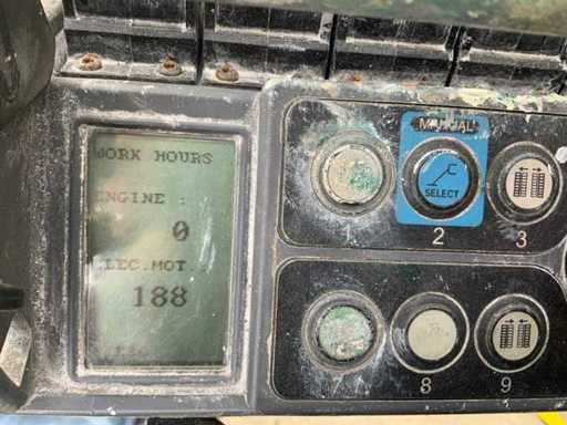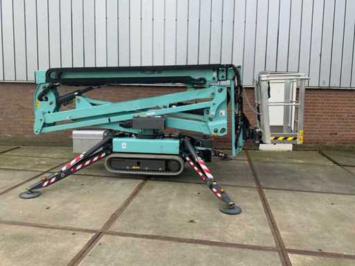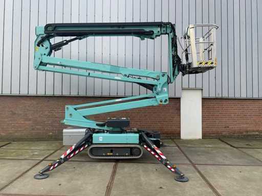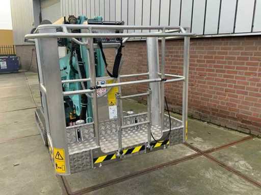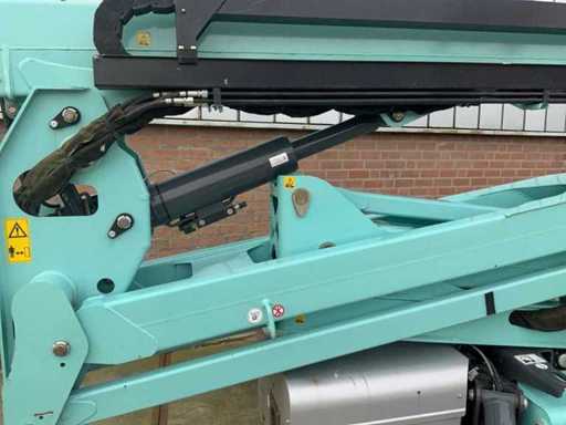Indoor and outdoor, Max. rotation 360°, double row speed, maximum tilt (B / L) 15.00, max. wind 15.00, equipped with hydraulic outriggers, outrigger width outer size: 3.35 meters, Lithum-ion batteries, connection voltage: 230 volts, 50 Hz, compressed air and power connection in the basket. Including aerial work platform book