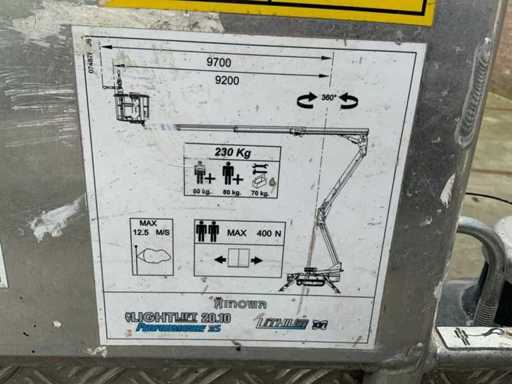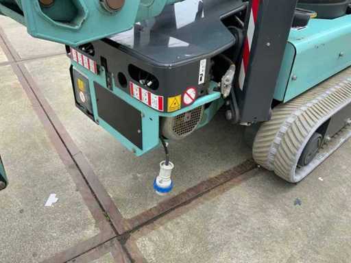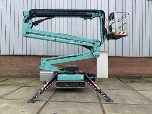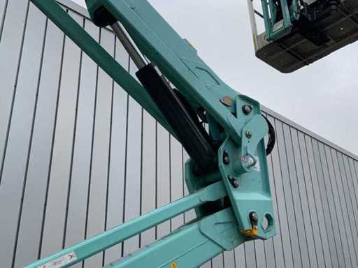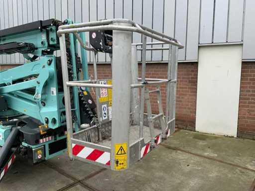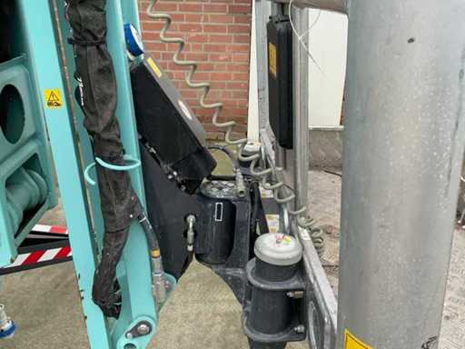 Indoor and outdoor, Max. rotation 360°, double row speed, maximum tilt (B / L) 15.00, max. wind 15.00, equipped with hydraulic outriggers, outrigger width outer size: 3.35 meters, Lithum-ion batteries, connection voltage: 230 volts, 50 Hz, compressed air and power connection in the basket. Including aerial work platform book