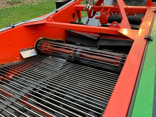 Harvester, 540 Rpm, Track width 150 cm, goes over two harvesting mats with pitch 42 and both a beater in the mat, equipped with hydraulically extendable conveyor belt/cross belt, Input reel: Flap roller of rubber, divided and spiral shaped, coulter discs adjustable in height, dimensions 4500x2350x1400 mm