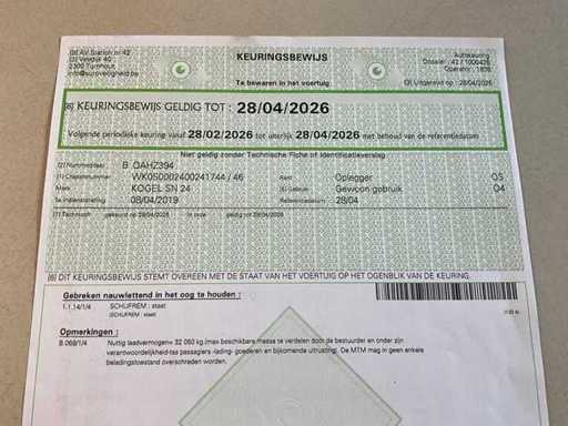 Documents present: Registration certificate part I, Registration certificate part II, Identification report, Certificate of conformity, Inspection certificate, TÜV Nord certificate.