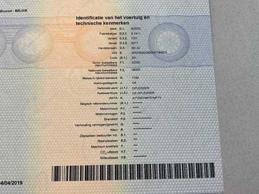 Documents present: Registration certificate part I, Registration certificate part II, Identification report, Certificate of conformity, Inspection certificate, TÜV Nord certificate.