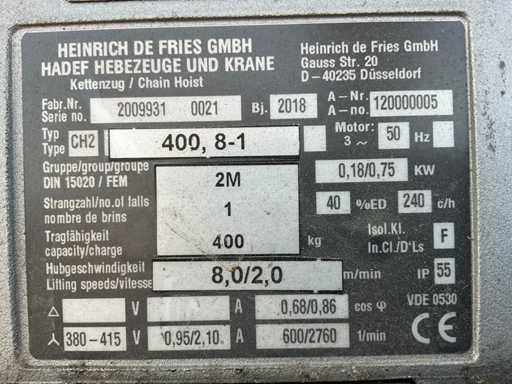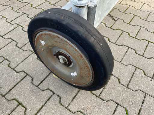 stellift; mobile; galvanized steel frame; push trolley; electric hoist Heinrich de Fries CH2 400, 8-1; ballast concrete block; electro hydraulic disassembly and assembly; telescopic mast; arm length 5000 mm; hook height 4500 - 6000 mm; superstructure steel cable; working condition not verified;