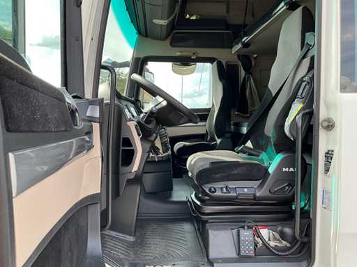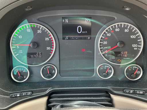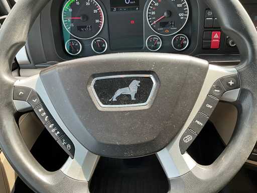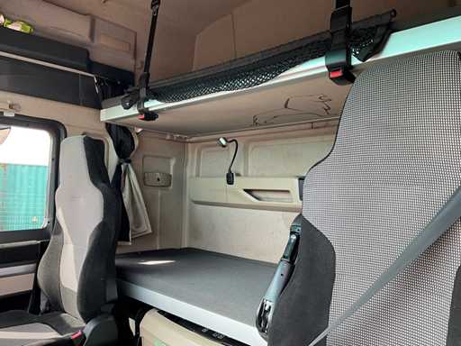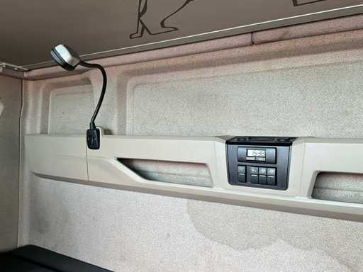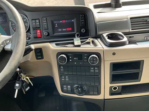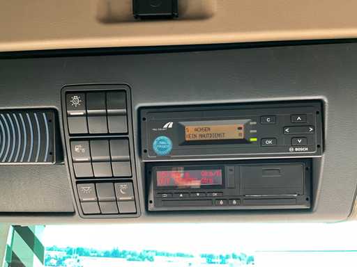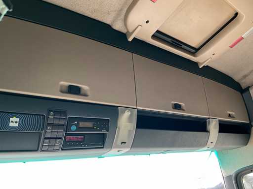 electric windows and mirrors, mirror heating, steering wheel controls, air conditioning, lock, digital tachograph, refrigerator, sleeping cabin, double fuel tank, starter breaker