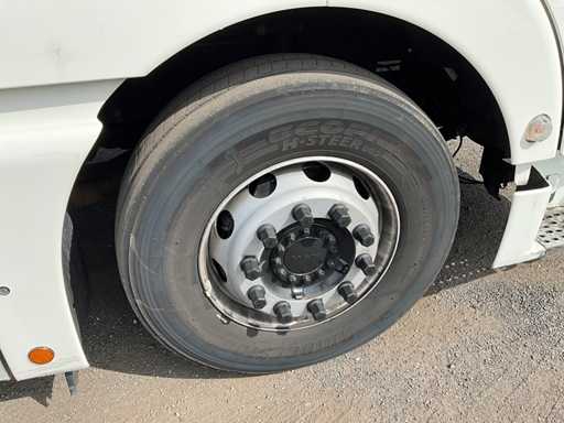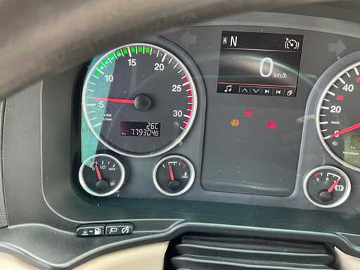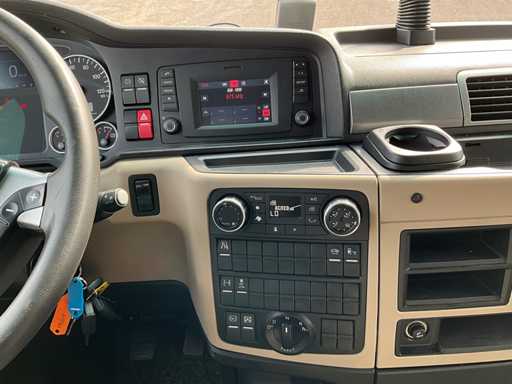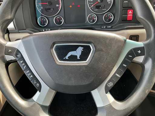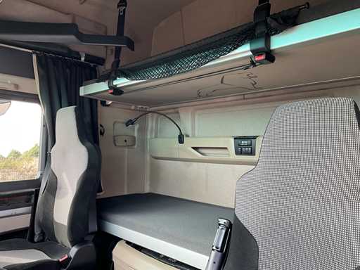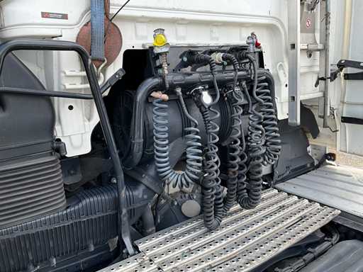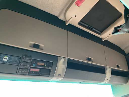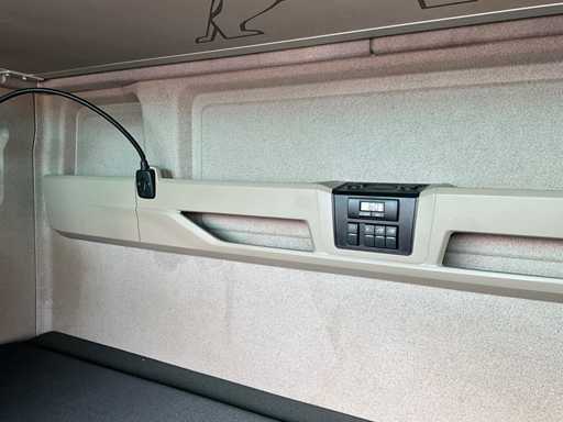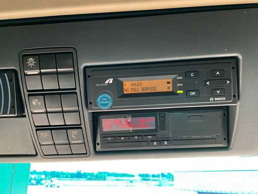 electric windows and mirrors, mirror heating, steering wheel controls, air conditioning, lock, digital tachograph, refrigerator, sleeping cabin, double fuel tank, starter breaker