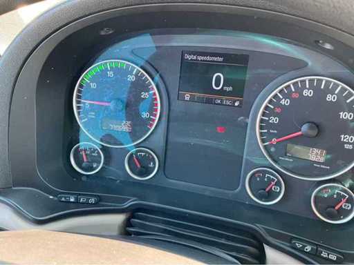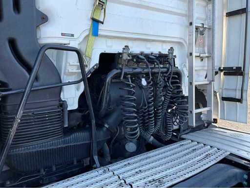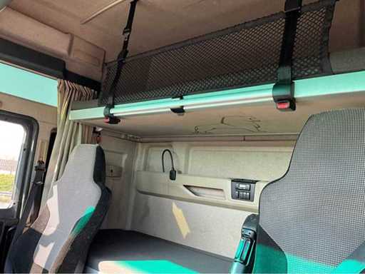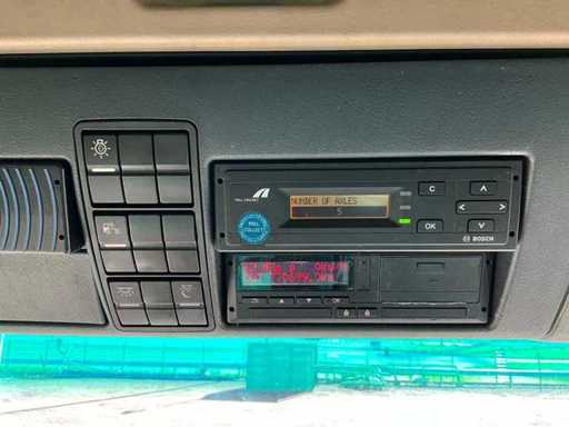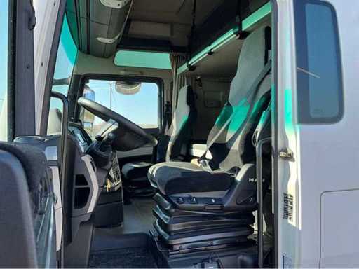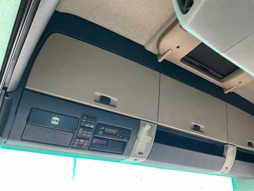 electric windows and mirrors, mirror heating, steering wheel controls, air conditioning, lock, digital tachograph, refrigerator, sleeping cabin, double fuel tank, starter breaker