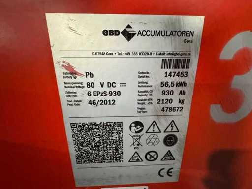 - Battery:46/2012 80V 930 Ah, good performance measured with 84.25V