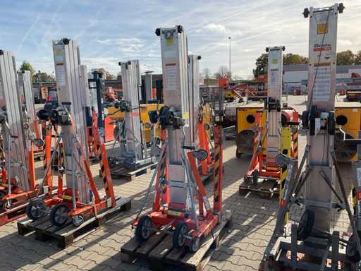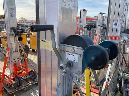mobile; galvanized steel/aluminum; folding base; wire rope winch; Application: maintenance work / assembly work / installation work; working condition not verified.
