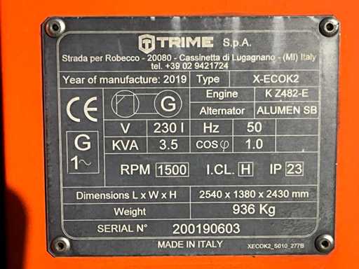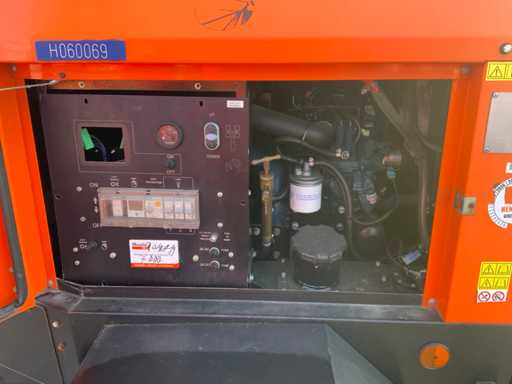 Serial number 200170411; length 2540 mm; width 1380 mm; height 2430 mm; diesel engine; Alumen alternator; 6x150 Watt LED lamps; 230 Volts; 5 kVA; fuel tank 110 liters; hydraulic mast; maximum mast height approximately 8.5 metres; 2x adjustable foot; hours reading not readable; lifting eye; without trailer coupling; rear lights; not working; (the buyer must provide a valid registration number when transporting by road; a 7 or 9 pin connection plug or adapter with cable (extension cord can be purchased on site for a fee); possibly extra light bar; Dutch registration already exported; without a certificate of conformity);