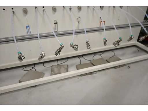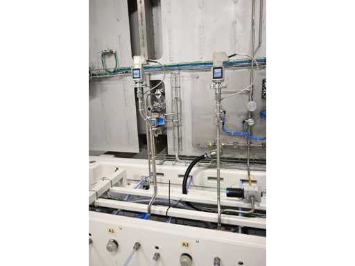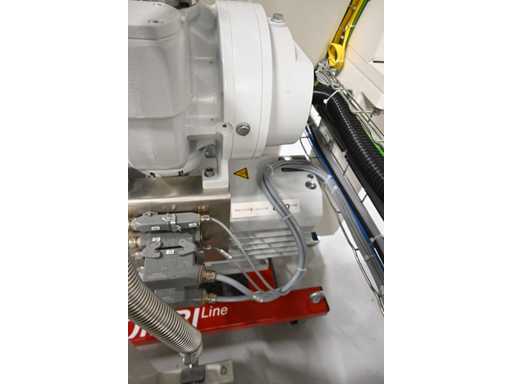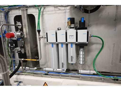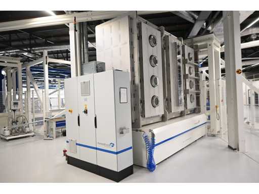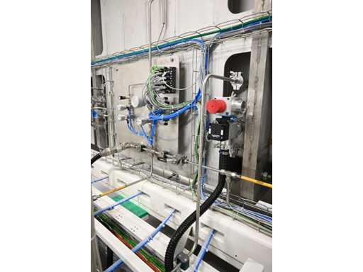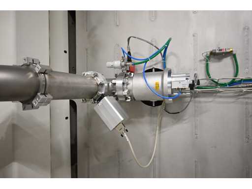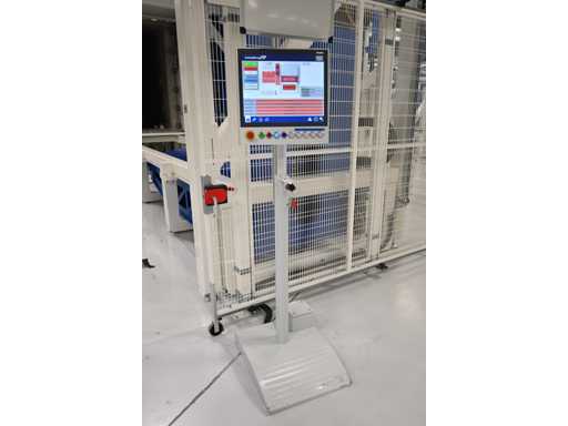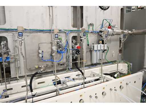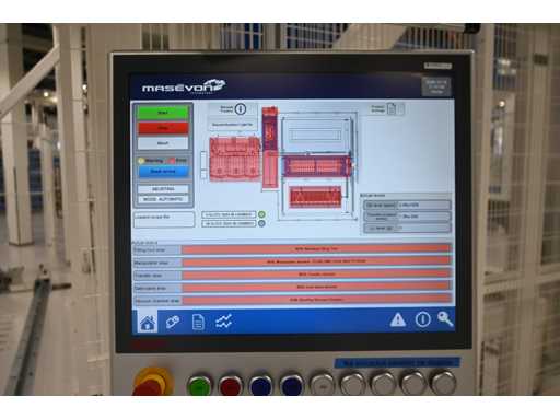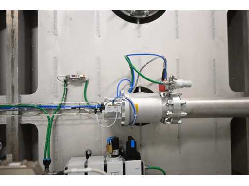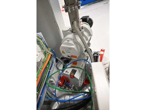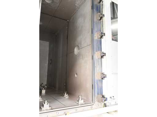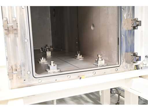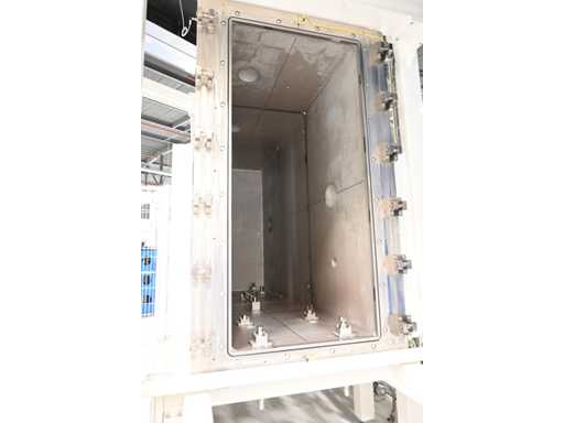 Filling Cell Tool with LC liquid. Consisting of a Transfer System, Manipulator, Gate Valve, 2 x Pfeiffer WD 400 Combi-Line Vacuum Pump with (Coil) Canister, capacity: 5 canisters, Vacuum Chamber and Electrical Box with HMI touchscreen operator control screen. 1.5 bar overpressure capacity. Volume: 11,800 liters. Includes 5 pressure gauges, vacuum valves, etc. Includes Beckhoff CP 3919-0010 operator touch screen screen. Weight approx. 37,000KG. Machine investment €1,100,000 excl. VAT.