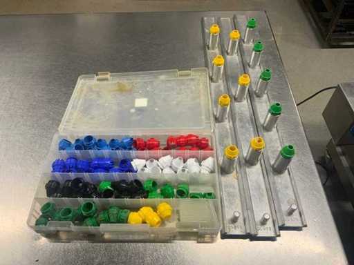 equipped with Schneider Electric Magelis operator panel. Includes 3 molds with nozzles and assortments of box filled