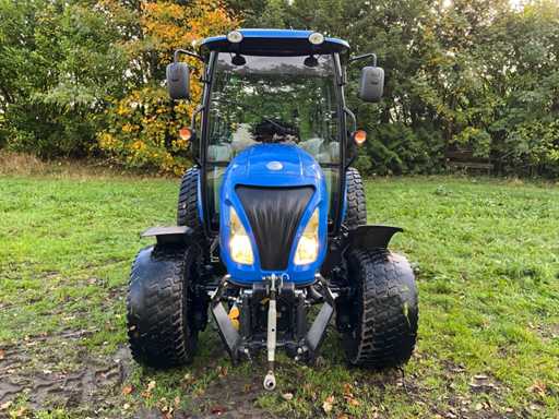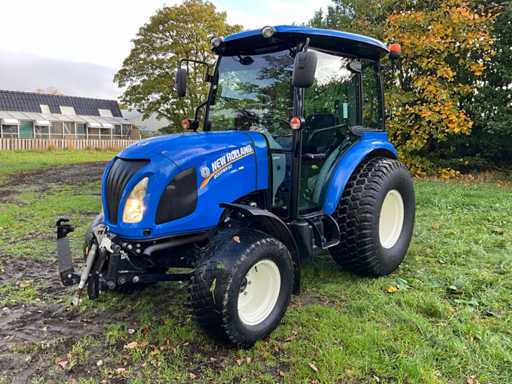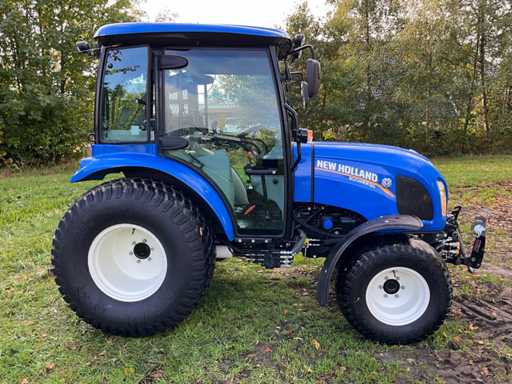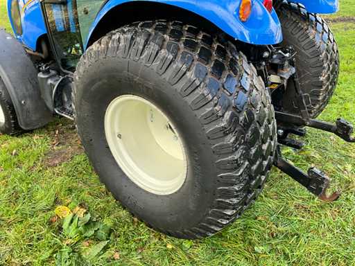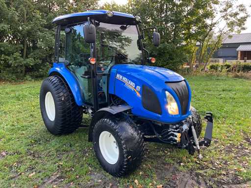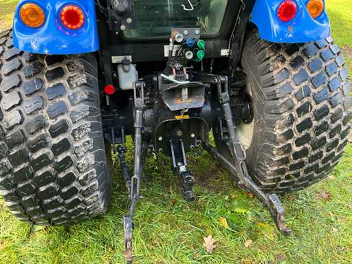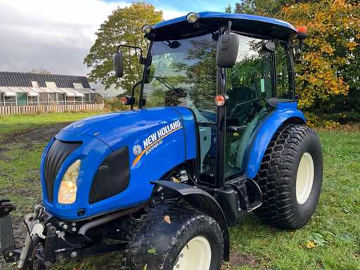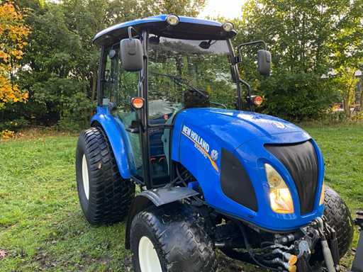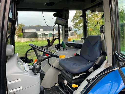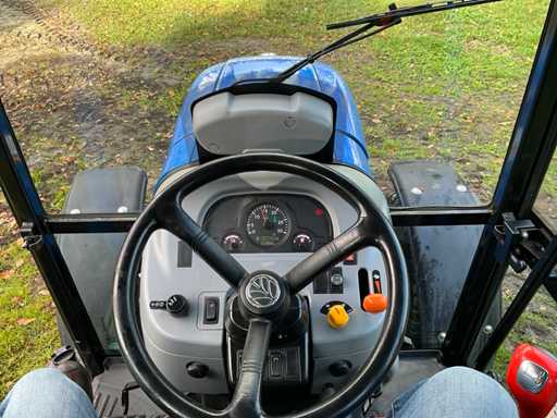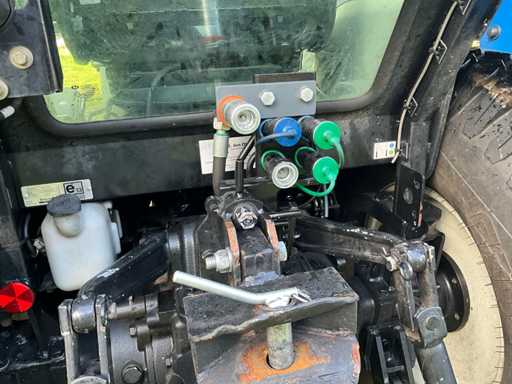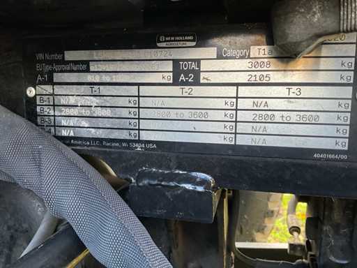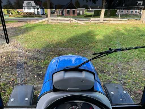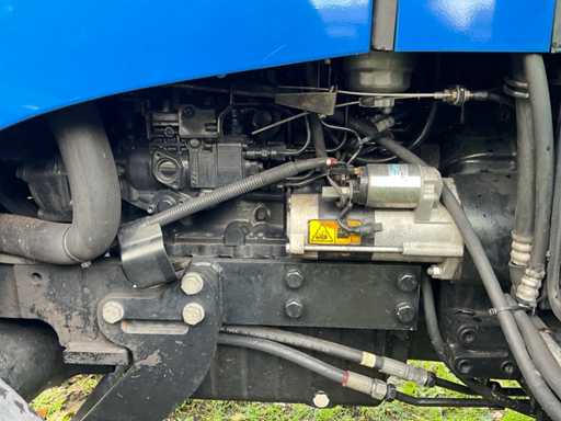Equipped with 4-Cil. "New Holland" diesel engine; PTO shaft 540/540E/1000; 2 double-acting hydraulic valves; depressurized return; lower drawbar; front linkage; front PTO; 1 double-acting front hydraulic valve; work lighting; camera system with monitor and camera;