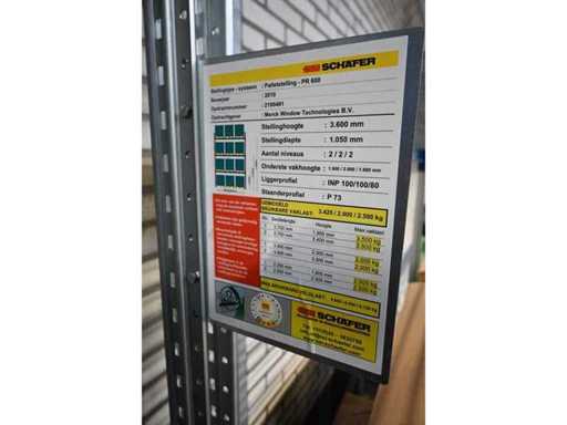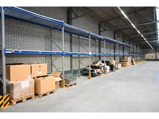 3 x section width 390cm, 12 beams of 390cm, 1 x section width 330cm, 2 beams of 330cm, 3 x section width 270cm, 12 beams of 270cm, 9 x section width 220cm, 36 beams of 220cm. Including Schäfer shelves, collision protection, etc.